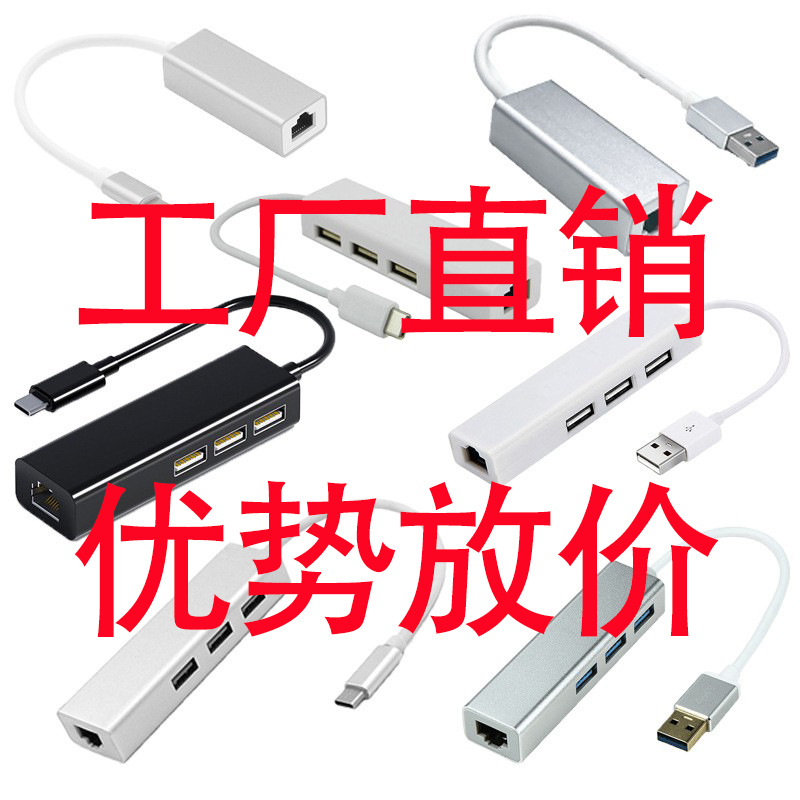 Kartu jaringan USB + HUB tipe-c ke rj45, usb ke kartu jaringan tipe-c jaringan eksternal port 100 gigabit