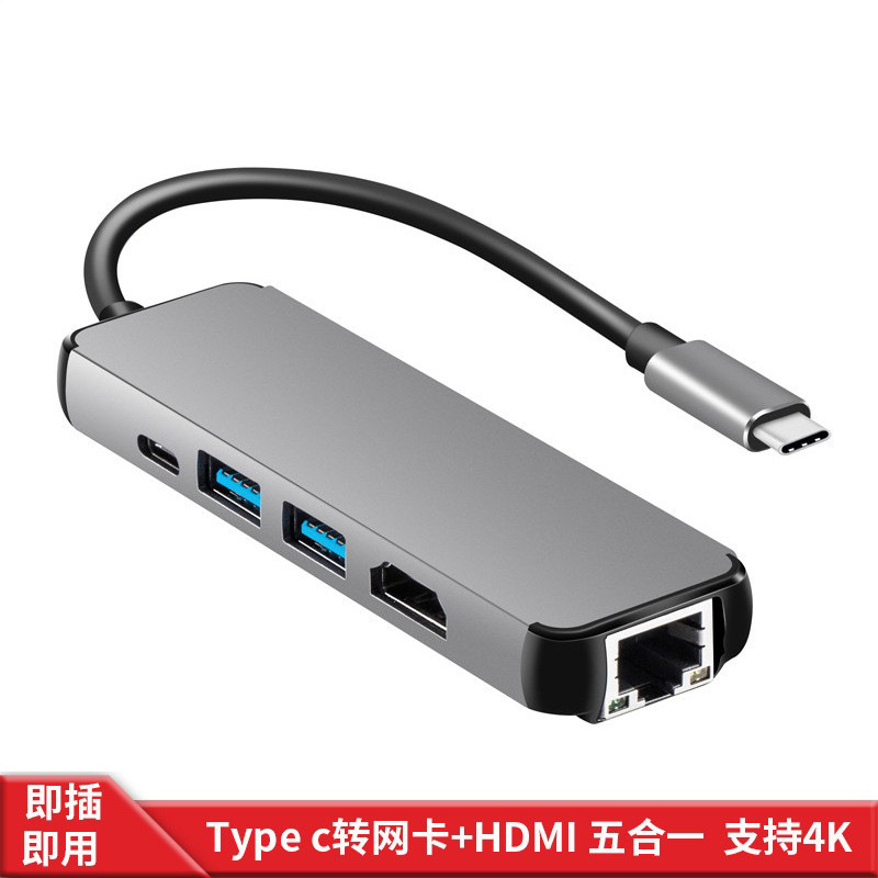 Stasiun Dok Tipe c khusus lintas batas, Tipe C ke HDMI 4K Gigabit Nic 3.0HUB semua dalam satu