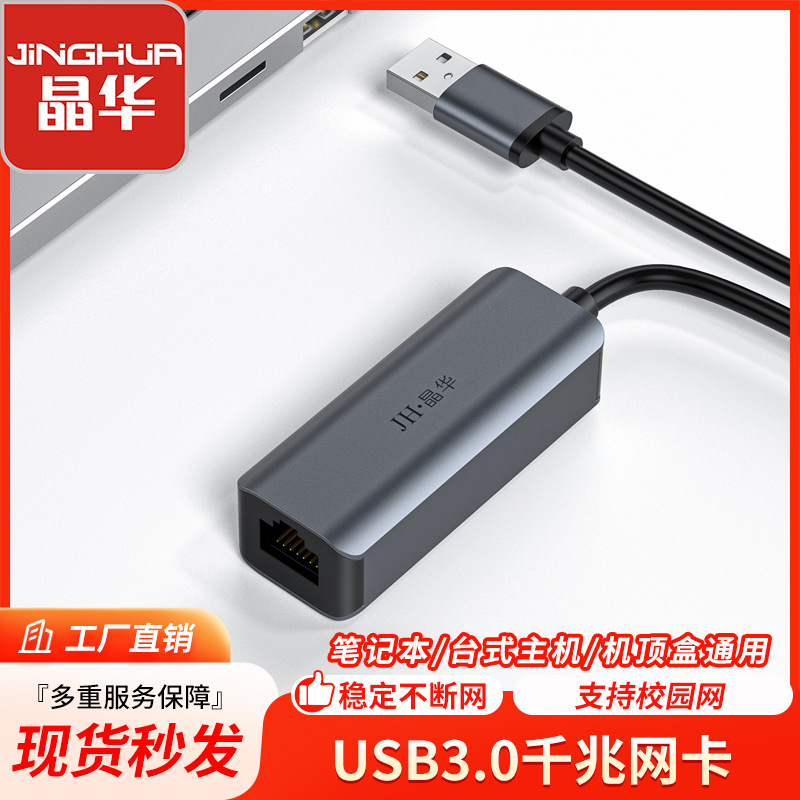 Jinghua kartu jaringan eksternal usb RJ45, kartu jaringan eksternal aluminium Aloi komputer desktop laptop USB ke kartu jaringan gigabit