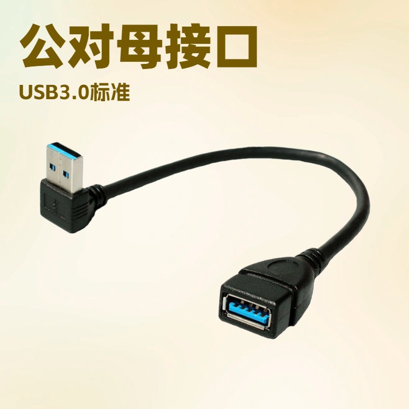 Kabel ekstensi USB male to female, kabel data konektor konversi docking samping tipe L kecepatan tinggi 3.0
