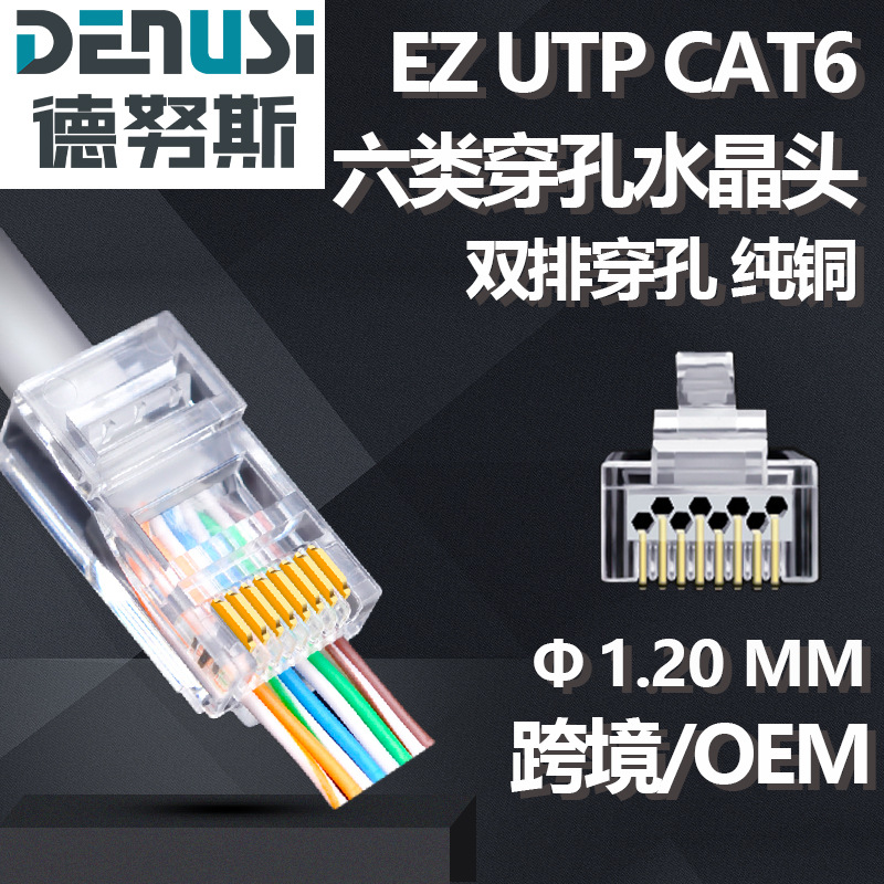 Produsen sumber Super enam jenis melalui lubang kristal kepala rj45 konektor kabel jaringan utp baris ganda kepala kristal berlubang