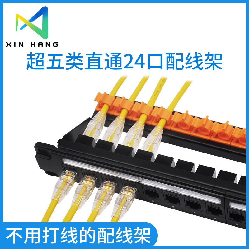 Rangka distribusi langsung 24-port rangka kabinet kabel jaringan ultra-lima bingkai pengatur kabel 1U berlapis emas bebas lubang