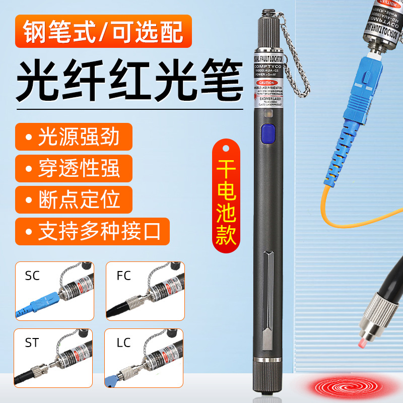 Pena lampu merah serat optik, cahaya pena 5/10/20/30/50km sumber cahaya merah 10MW tipe pena