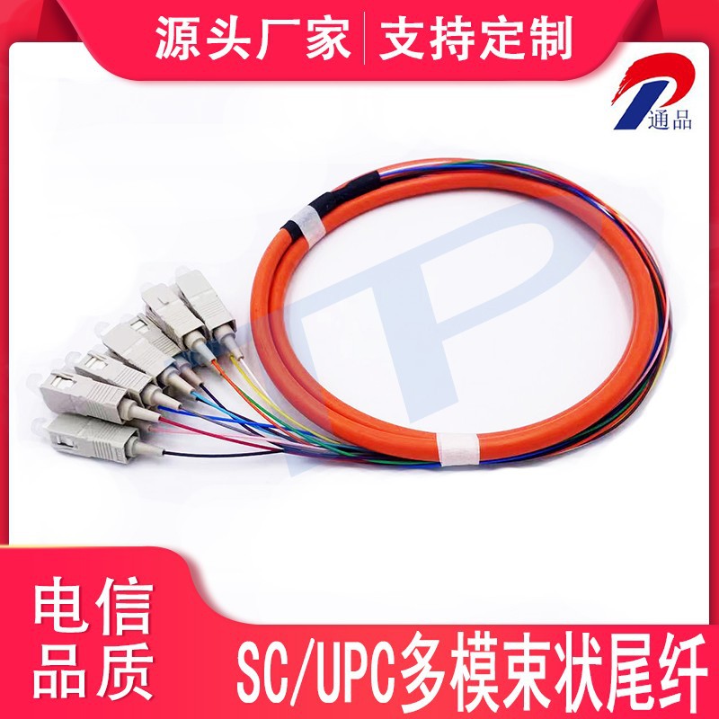 Serat optik kuncir 12-core bundel multi-mode pigtail 50/125 jumper serat optik OM2 grade telekomunikasi konektor kepala persegi SC
