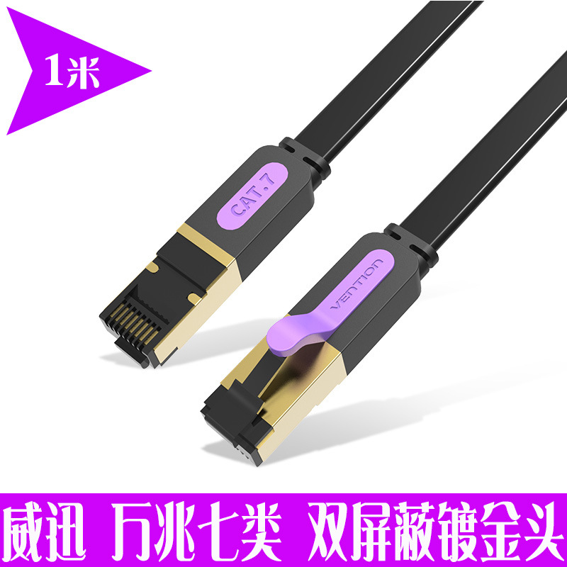 Weixun kabel jaringan datar Kelas 7, kabel jaringan datar kecepatan tinggi tembaga murni Gigabit dalam dan luar ruangan, kabel jaringan berpelindung broadband komputer 1.5 m