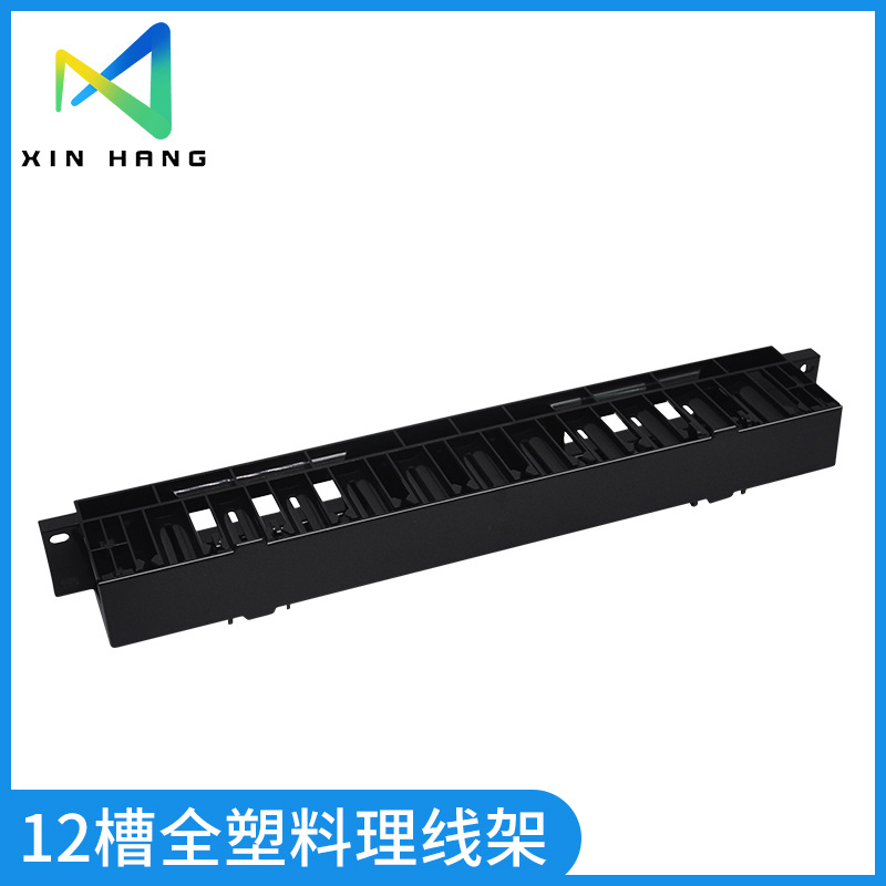 Pengatur kabel plastik 12 slot kabinet pusat data rak 1U pengatur kabel jaringan plastik penuh