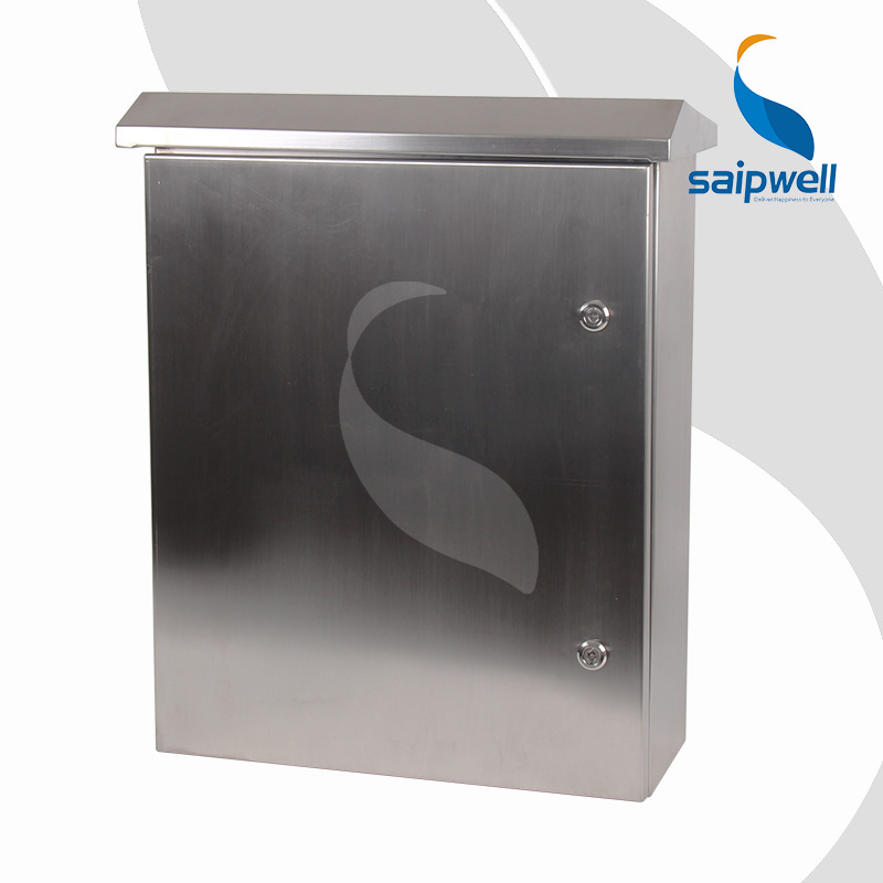 Kotak informasi baja tahan karat 304 luar ruangan, kotak kabel pemeriksaan listrik dengan tepi topi tahan hujan dan tegangan kuat