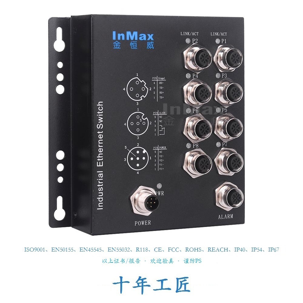 Jinhengwei InMax rail Cross 8-port Gigabit POE dikirim-borne M12 steker penerbangan terpasang kendaraan tahan air IP67 saklar
