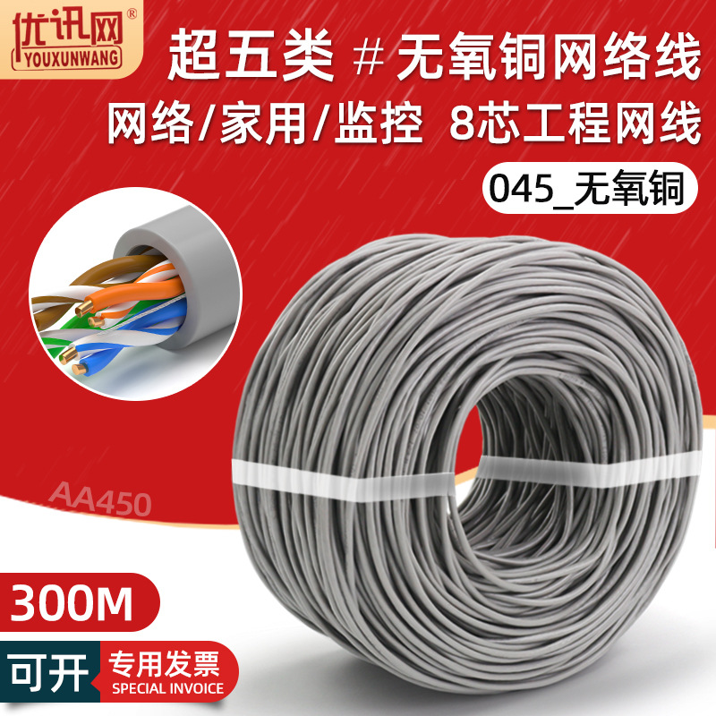 Kabel jaringan ultra-5, kabel jaringan rumah tangga bahan tembaga lembut bebas oksigen, kabel broadband komputer 8-core ultra-5 kabel jaringan 300m