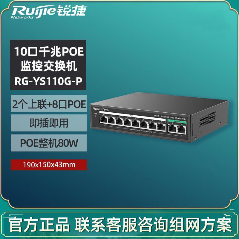 Jaringan Ruijie Ruiyi RG-YS110G-P 8 Gigabit POE Switch Pemantauan Catu Daya AP Catu Daya Standar Nasional Pasokan Penuh