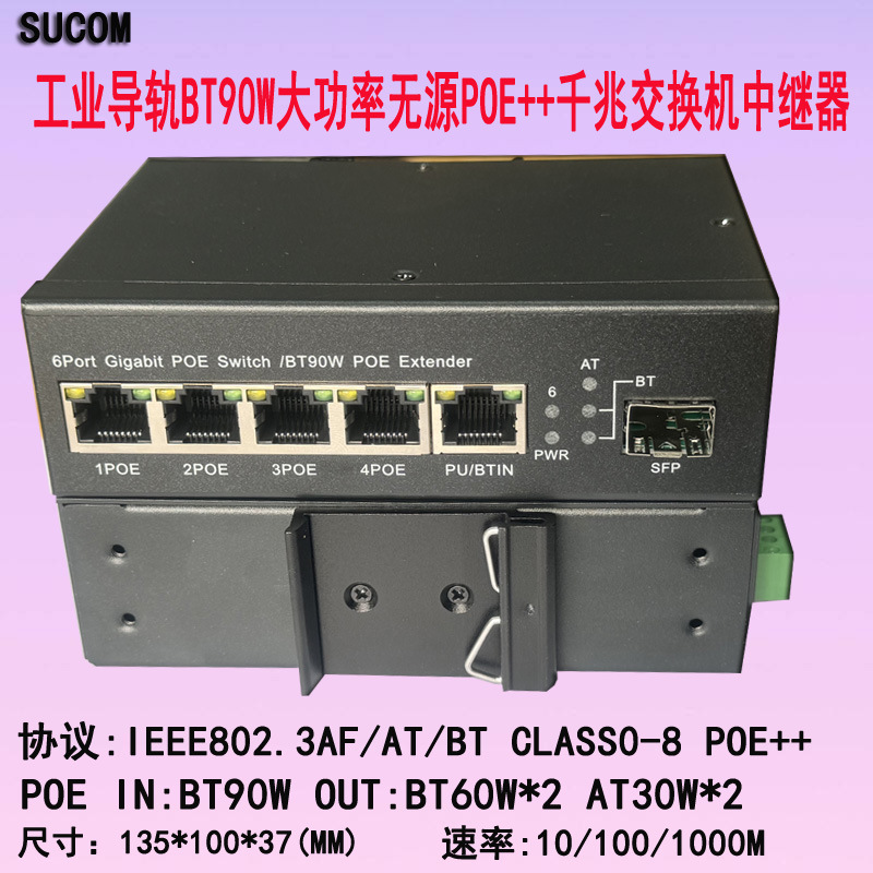 Industrial BT90W extender POE, daya tinggi + repeater pasif SFP gigabit switch satu-empat POE extender