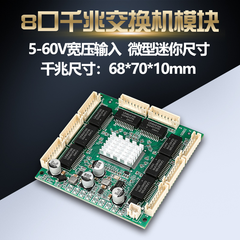 Modul saklar soket Gigabit 8-port, motherboard jaringan kontrol industri nirkabel HUB miniatur kecil kelas Industrial