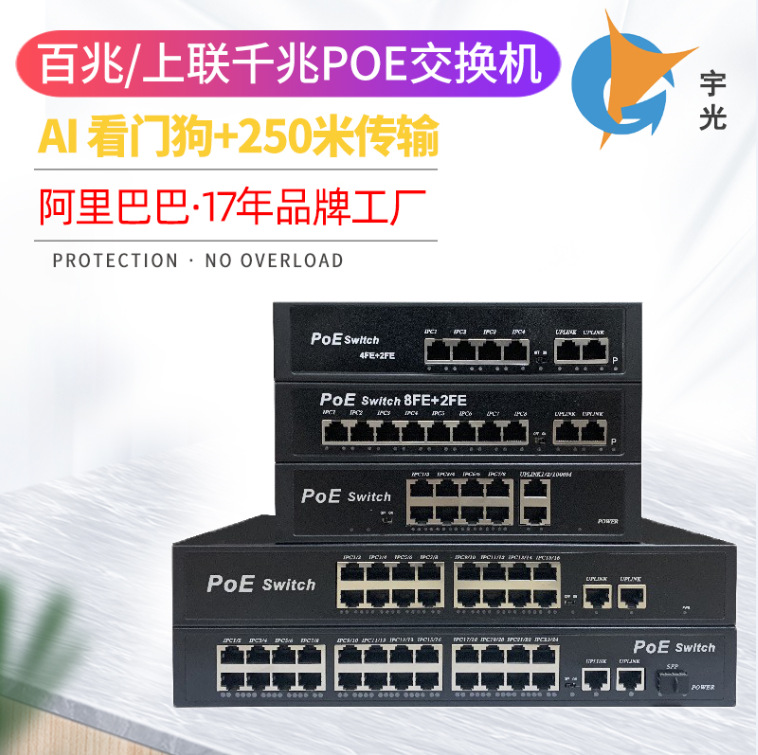 Saklar poe standar standar pemantauan keamanan Yuguang standar nasional 48V switch daya tinggi plug-and-play