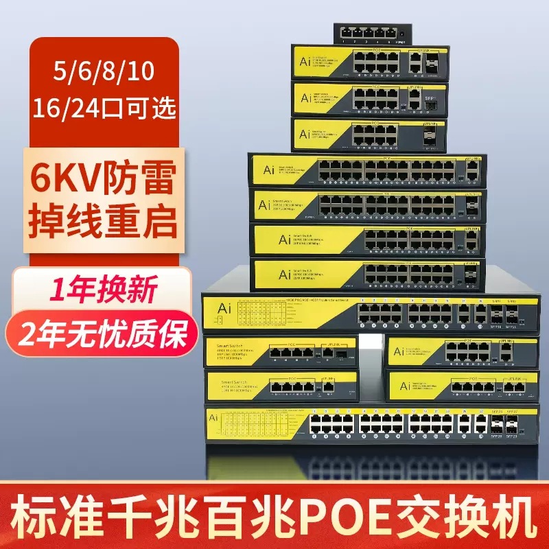 Lightning perlindungan standar POE power supply switch Gigabit 100 m 4-port 8-port 10-Port 16-port 24-port pemantauan jaringan didedikasikan