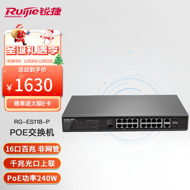Ruijie pemisah kabel non-jaringan, sakelar 16-port RG-ES118-P m Poe