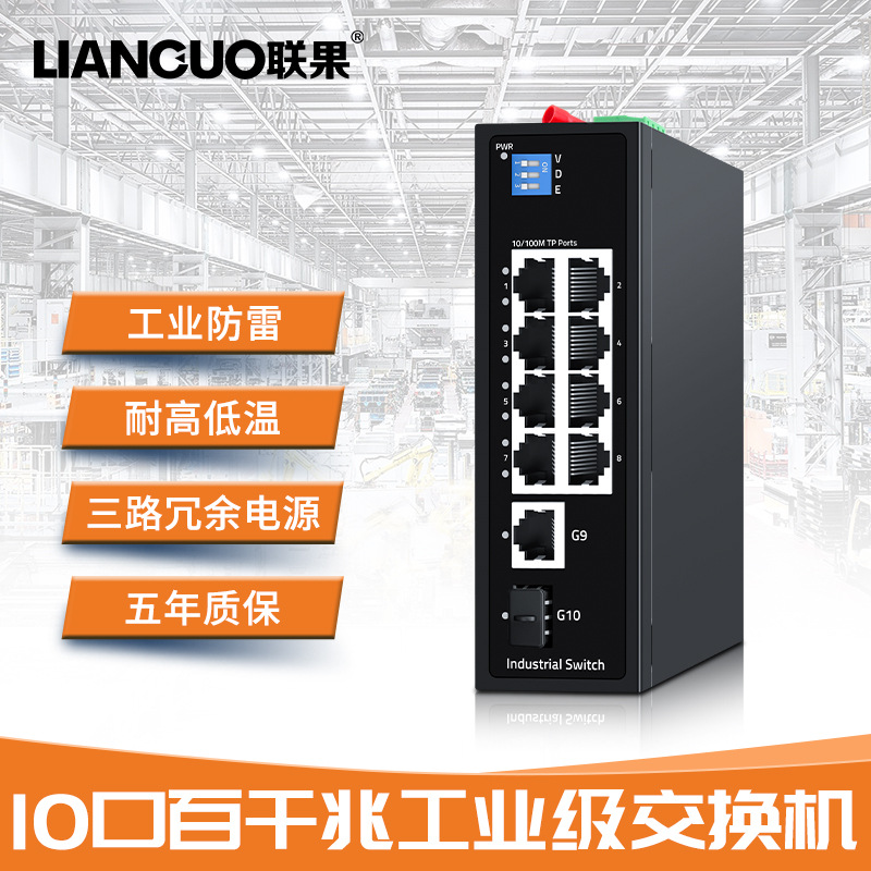 Buah bersama 8-port 100 gigabit kelas industri saklar VLAN isolasi petir perlindungan 250 m diperpanjang DIN rel instalasi