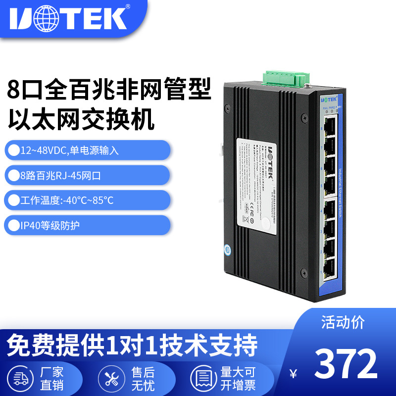 UTEK industrial switch 8-port, UT-60-DSA8T rel panduan port listrik penuh 100 m