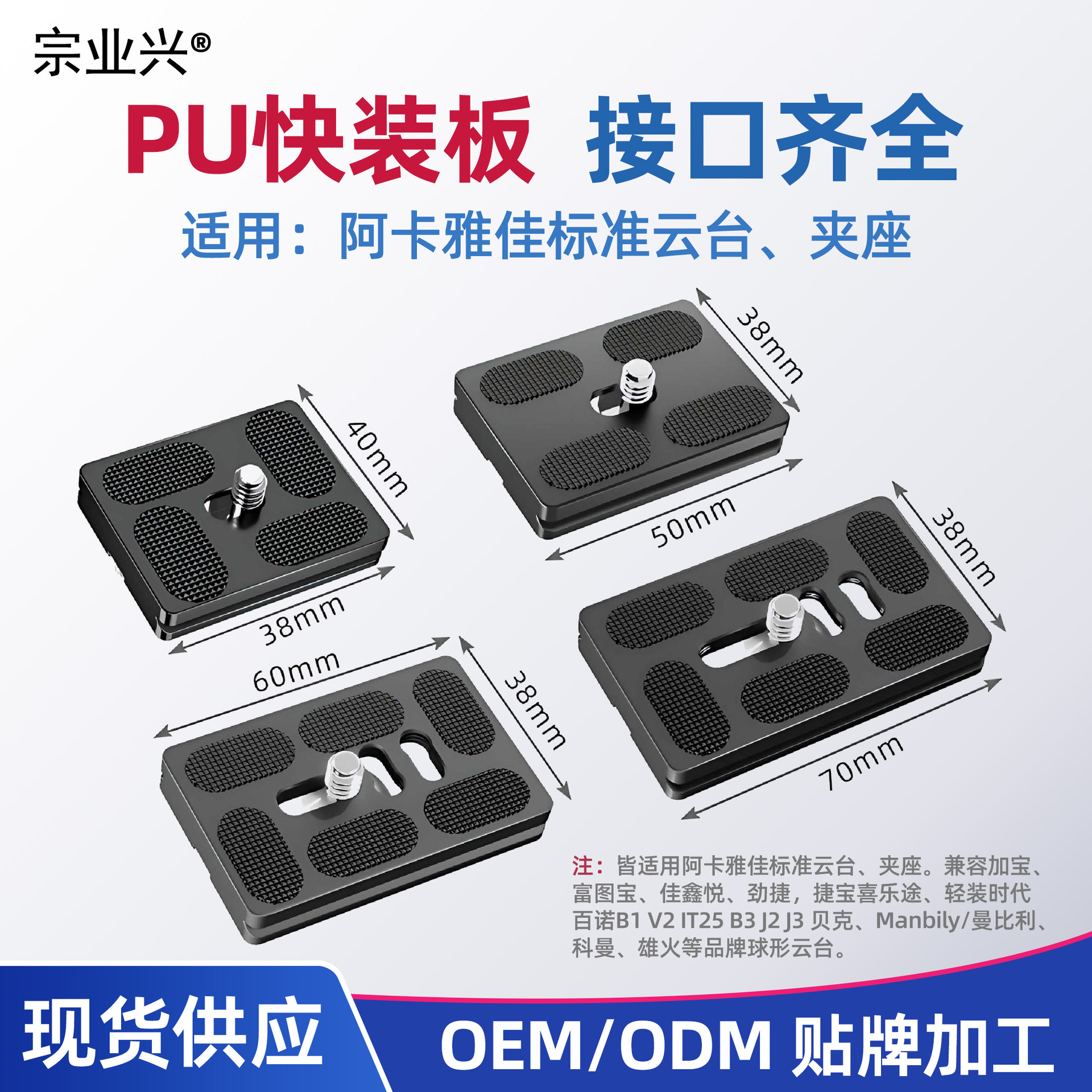Pabrik langsung aluminium Aloi seri PU pelat pelepas cepat dasar kepala tripod universal aksesori kamera pelat pelepas cepat