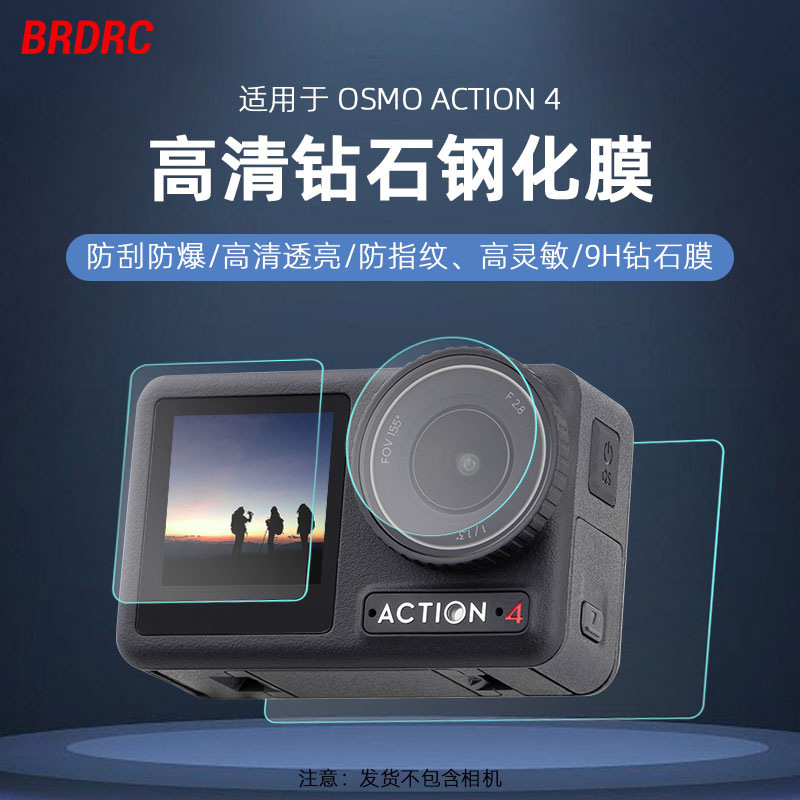 BRDRC适用大疆OSMO ACTION 4运动相机镜头屏幕贴膜保护钢化膜配件