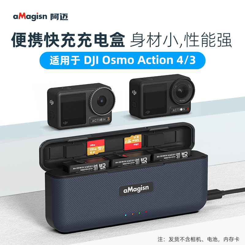 Amagis Amai aksesori kamera olahraga, pengisi daya kotak pengisian cepat untuk DJI Dajiang Action4/3