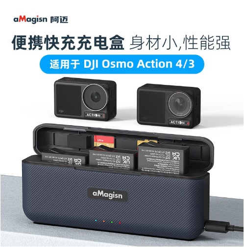 AMagisn Amai Cocok untuk DJI DJI Action4/3 Pengisian Cepat Charger Baterai Charger Aksesoris Kamera