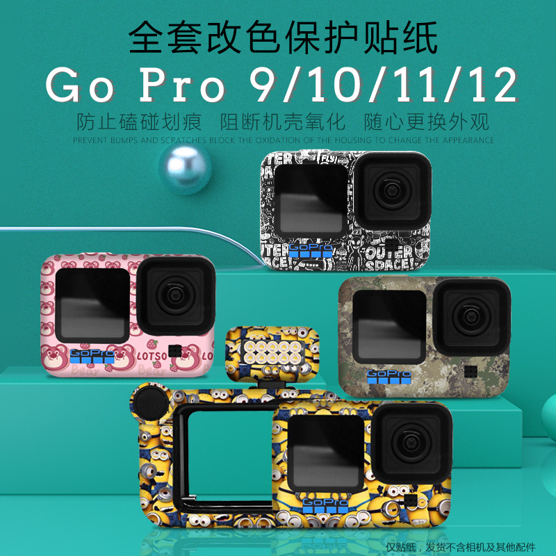 Berlaku untuk GOpro12/1110/9 stiker Kamera pola tubuh universal stiker berubah warna aksesori film pelindung bingkai luar