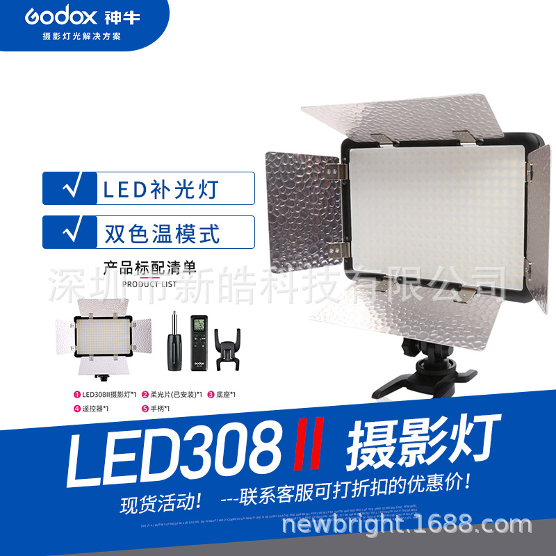 GODOX shenniu lampu kamera LED reflektor, lampu sorot pernikahan generasi kedua LED 308ii