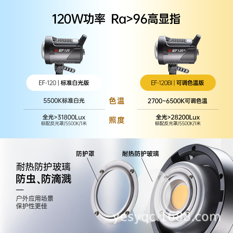 Jinbei EF120W/120BI lampu sorot fotografi, lampu konstan fotografi cahaya cantik lembut