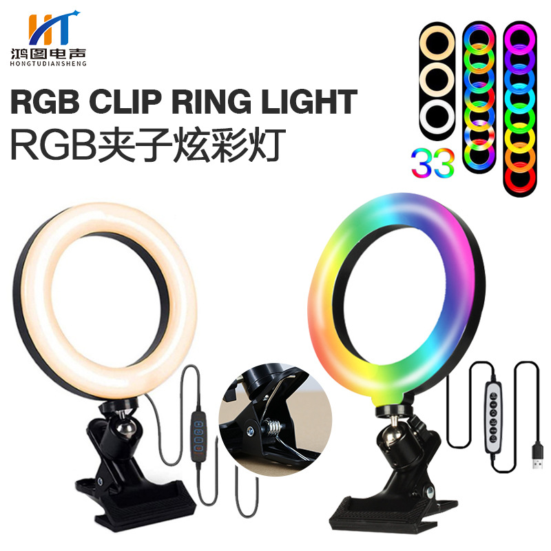 Lampu cincin RGB 6 inci, lampu pengisi kecantikan video komputer desktop 16CM warna-warni klip langsung