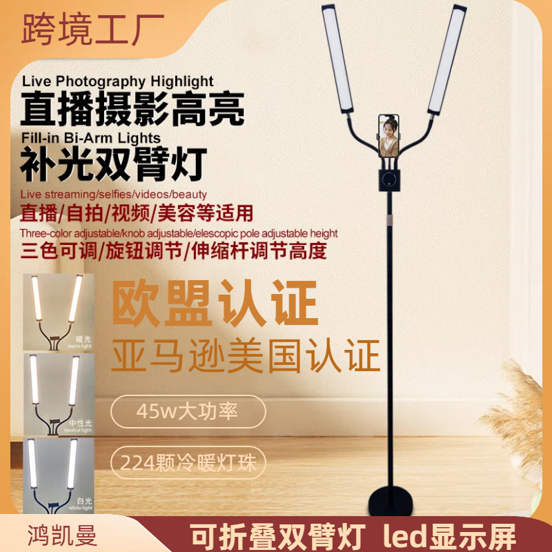 Paten Amazon Lintas Batas Lampu Lengan Ganda Bisa Dilipat Lampu Fotografi Berdiri Langsung untuk Selfie Selfie Ponsel
