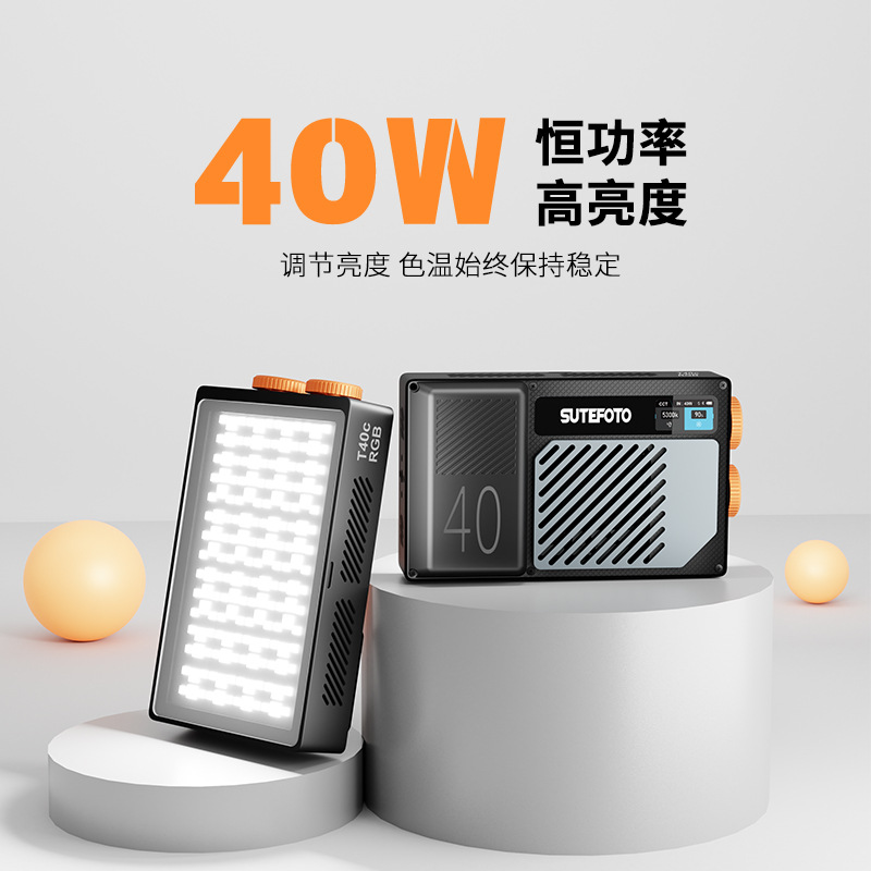 Speed T40 Lampu Tambahan Fotografi Portabel Kecil Langsung Tarian LED Warna Lampu Tetap Terang 40W