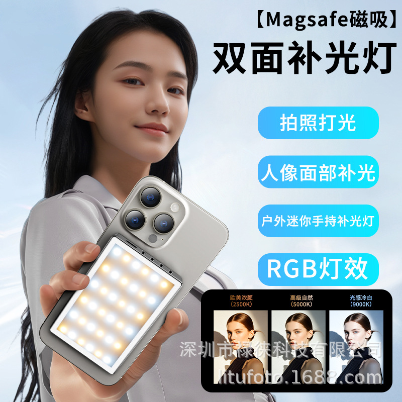 Lampu Isi Lampu Magnetik Ponsel Dua Sisi RGB Dua Warna Suhu Multi-File Penyesuaian Fotografi VLOG Kecantikan Selfie