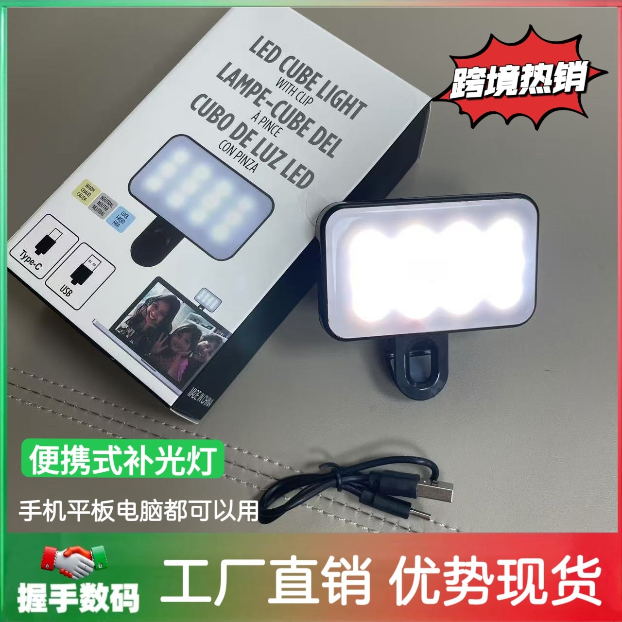 Lampu Tambahan untuk Konferensi Video Ponsel Tablet Komputer Lintas Batas Model Teratas Klip Foto Selfie Siaran Langsung Lampu Temperatur Dua Warna