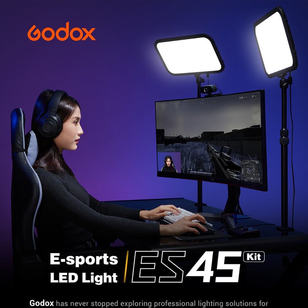 Godox shenniu lampu jangkar e-sport, lampu fotografi ES45, cahaya panel LED permainan ayam studio langsung