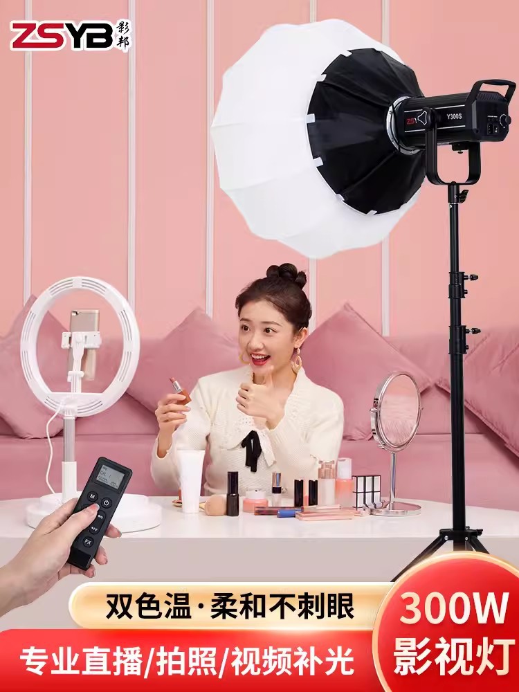 ZSYB300S lampu siaran langsung, tiga warna LED video foto 300W pencahayaan konstan ruang langsung lampu lembut