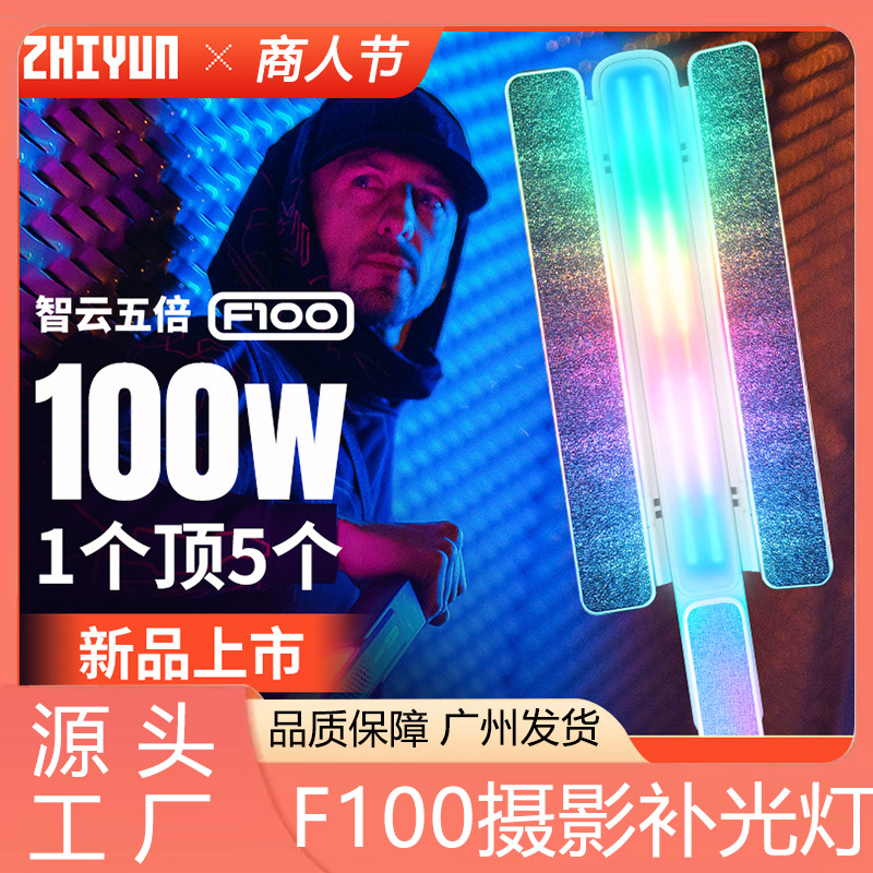 Zhiyun lampu fotografi five times F100, lampu cahaya stik rgb genggam Film dan lampu televisi, lampu es fotografi, lampu rambut