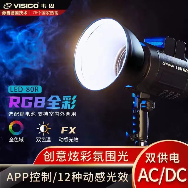 Visico Weisi lampu tembak, video fotografi luar ruangan portabel atmosfer warna RGB 80W dua warna