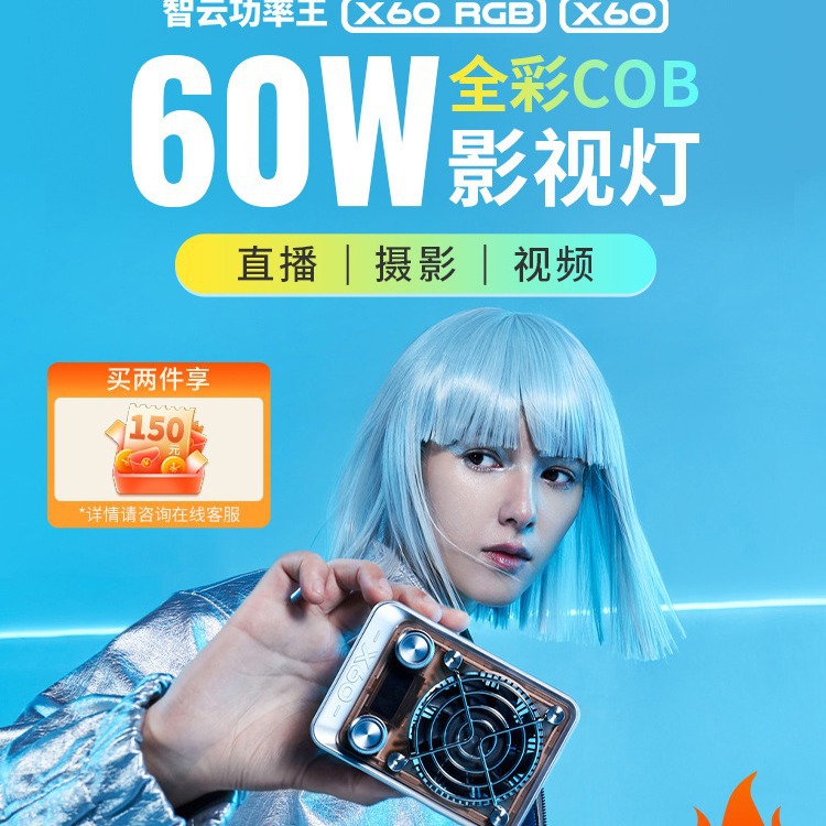 Zhiyun power King X60 lampu siaran langsung, lampu pencahayaan RGB 60W warna penuh, lampu Palm COB film studio langsung dan lampu Televisi