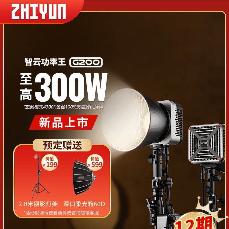 Zhiyun power King G200 live studio 300W, lampu isi fotografi dua warna suhu COB sorotan potret