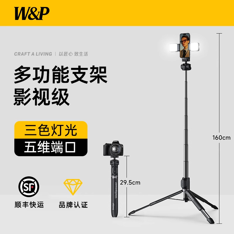 W & P Tongkat Selfie Tripod 360 Derajat Rotasi Bluetooth Multifungsi Dudukan Ponsel Kamera Genggam Alat Pemotretan