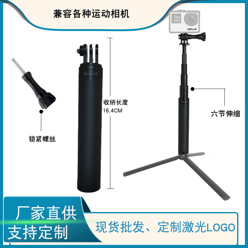 Produsen kamera olahraga tongkat selfie kamera multifungsi tongkat ekstensi teleskopik genggam tongkat selfie mini Gopro