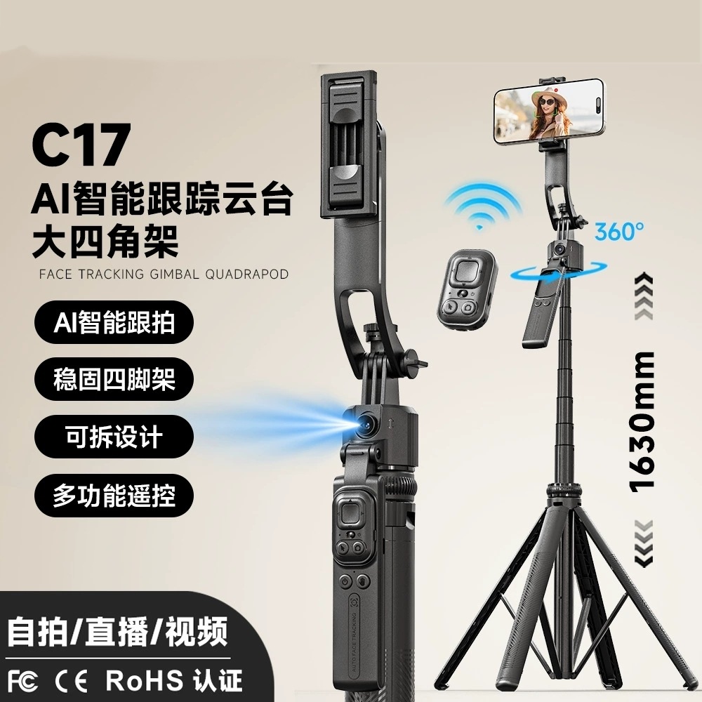 Tongkat Selfie Ponsel C17 Penyangga Ponsel Penyangga Ponsel Alat Pemotretan Kamera Otomatis Yang Dapat Dapat Diteleskopik Anti Goyang Penekan AI Cerdas
