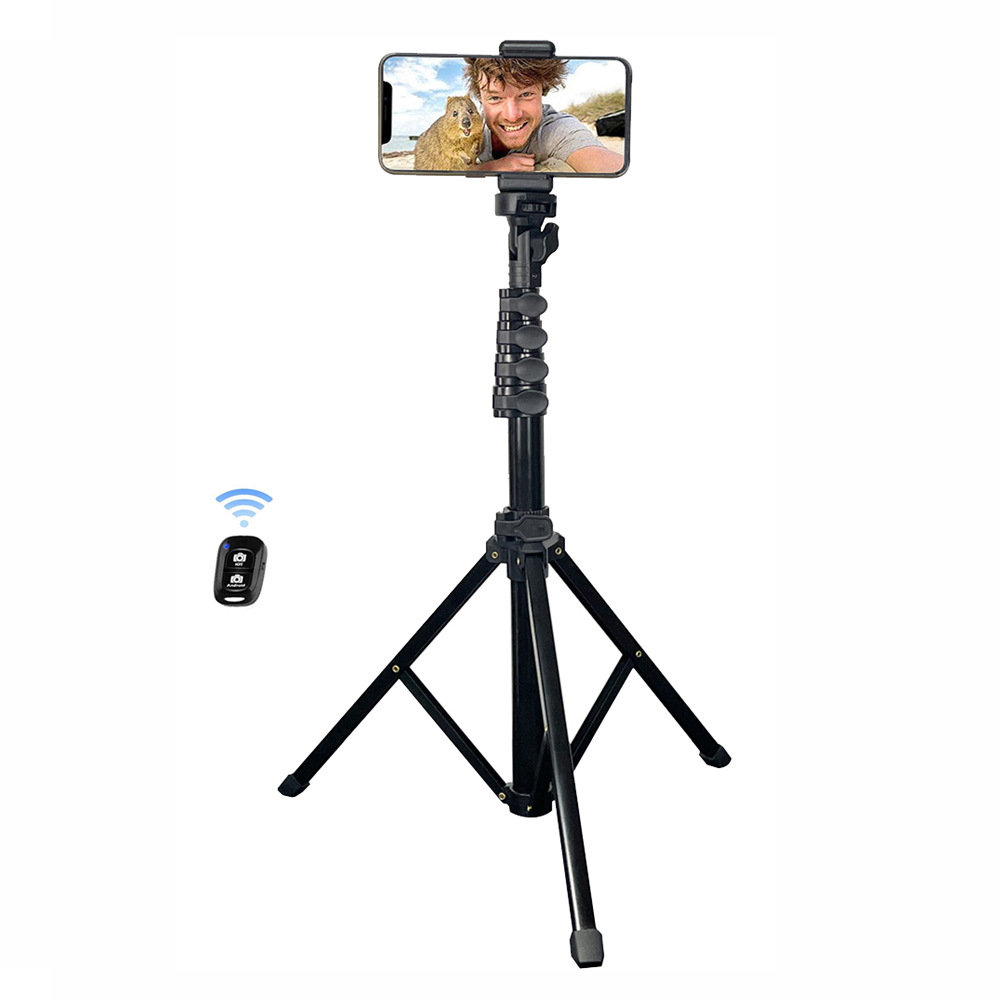 BT12 tongkat foto TikTok, tongkat selfie remote kontrol 1.65 m, tripod terintegrasi, tongkat selfie desktop langsung