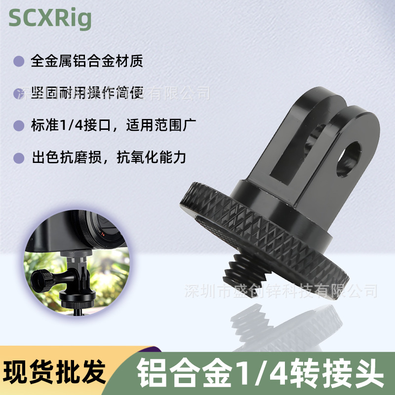1/4 adaptor tripod tongkat swafoto hitam, untuk GoPro/insta360 go 3, aksesori kamera olahraga