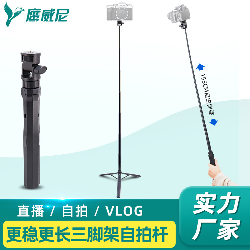 Grosir tongkat selfie tripod terintegrasi kamera vlog kamera ponsel artefak kamera siaran langsung lantai dapat ditarik braket pengambilan gambar