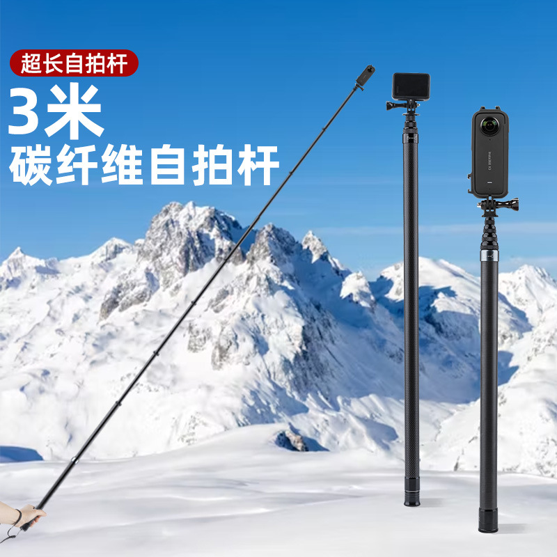 Tongkat Perpanjangan Serat Karbon 3 Meter untuk 360 Bayangan Batu Siaran Langsung X3X4 Braket Kamera Tongkat Selfie Teleskopik