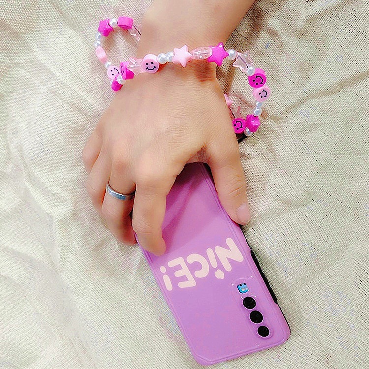 Ins tali ponsel modis Eropa dan Amerika manik-manik warna-warni lembut tembikar wajah tersenyum tali pergelangan tangan tahan jatuh pendek tali gantung antihilang modis rantai gantung