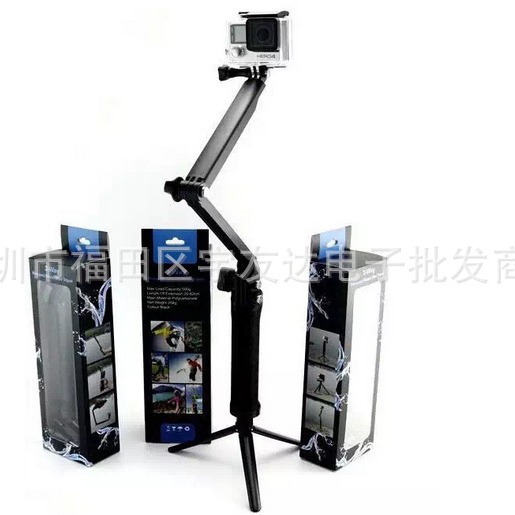 Aksesori Gopro her-4 kamera ant anjing gunung, tongkat selfie tiga arah lengan dapat disesuaikan 3 arah lipat dengan fungsi kunci