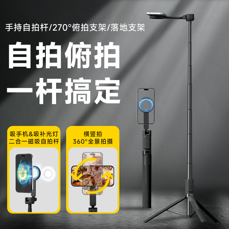 Handphone Produk Baru Lintas Batas Tongkat Selfie Sedot Magnetik Bluetooth T6 Braket Langsung Berdiri Universal Genggam Tongkat Selfie Tripod