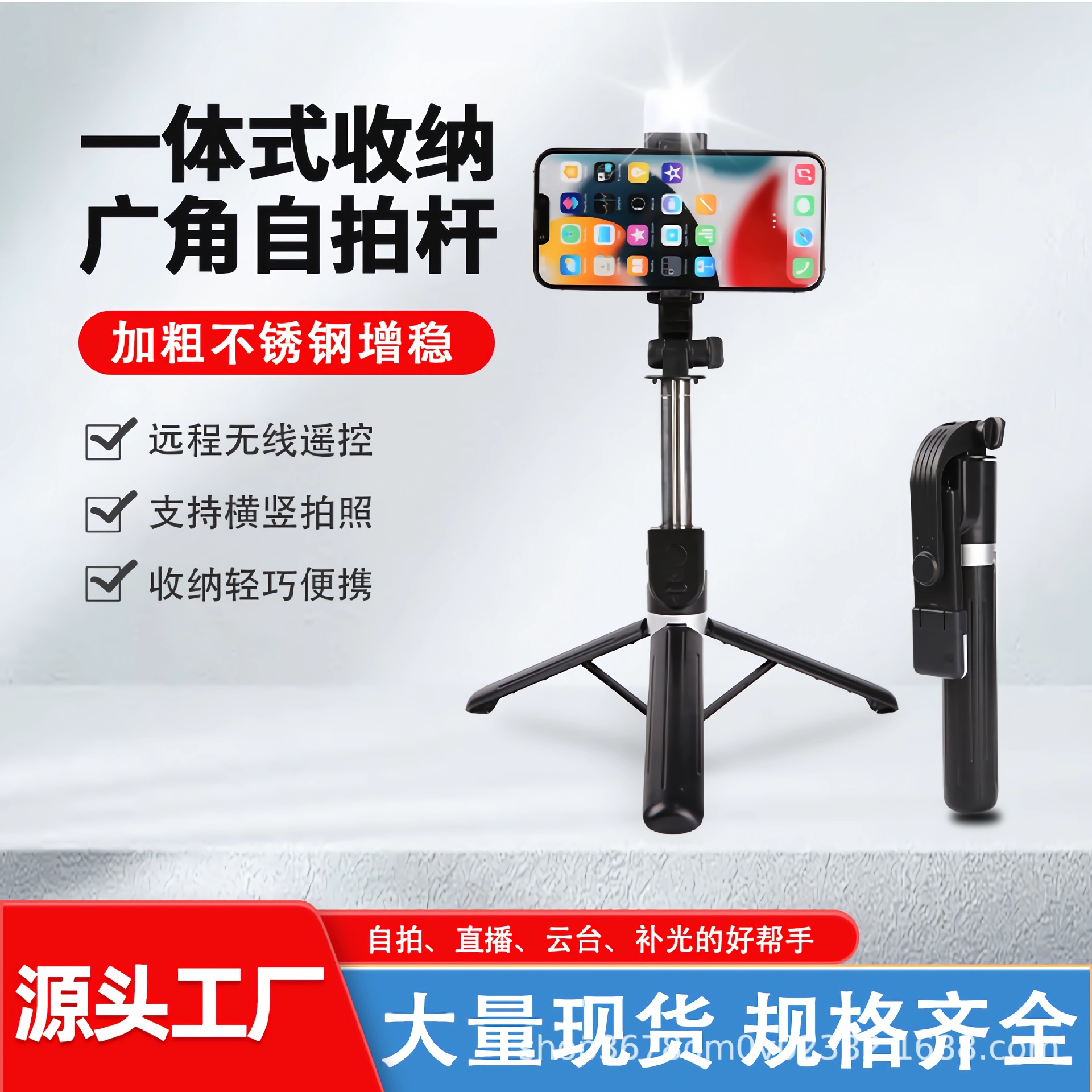 Alat Selfie Ponsel Tongkat Selfie Genggam Bluetooth Tiang Selfie Portabel Berisi Cahaya Desktop Berdiri Satu Bagian Tripod Siaran Langsung